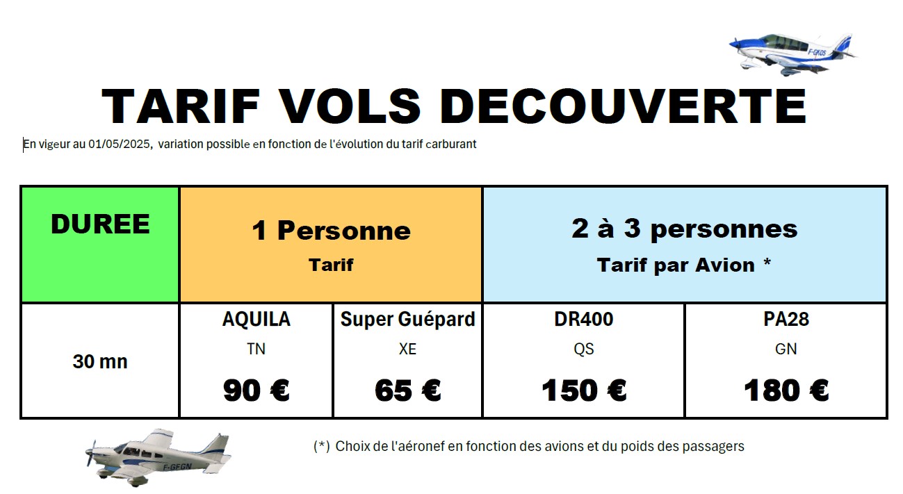 Voici un résumé de ce qu’il faut savoir avant d’effectuer un vol découverte. En ROUGE, vous trouverez les éléments liés à la Sécurité des Vols.